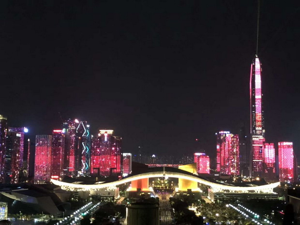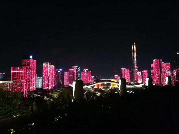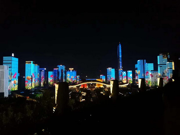 這臺(tái)別開生面的晚會(huì),主舞臺(tái)設(shè)在市民中心廣場,舞臺(tái)后方呈現(xiàn)著深圳市精心打造的福田中心區(qū)43座樓宇燈光秀,五彩斑斕、綺麗多姿的深圳城市新夜景,與晚會(huì)現(xiàn)場舞臺(tái)融為一體,為市民和廣大觀眾呈現(xiàn)出一個(gè)迷人的“深圳之夜”。