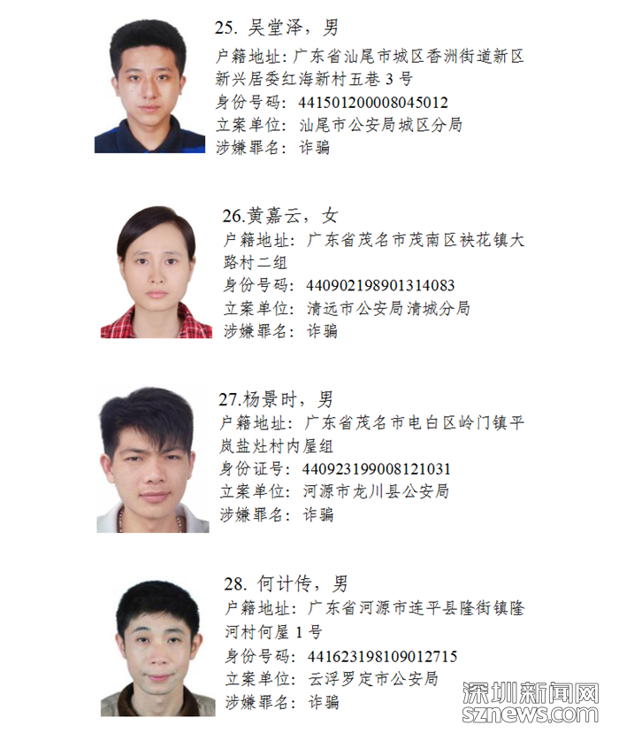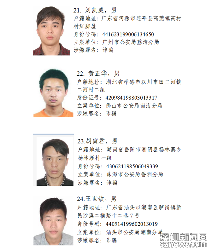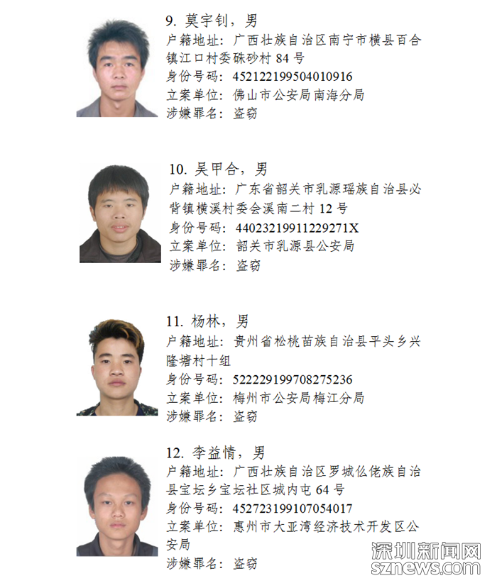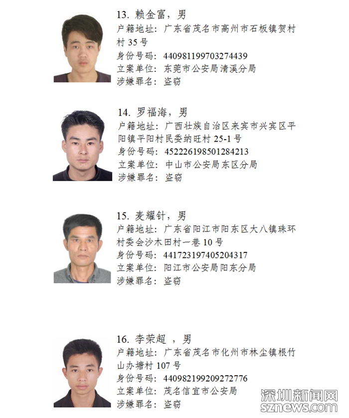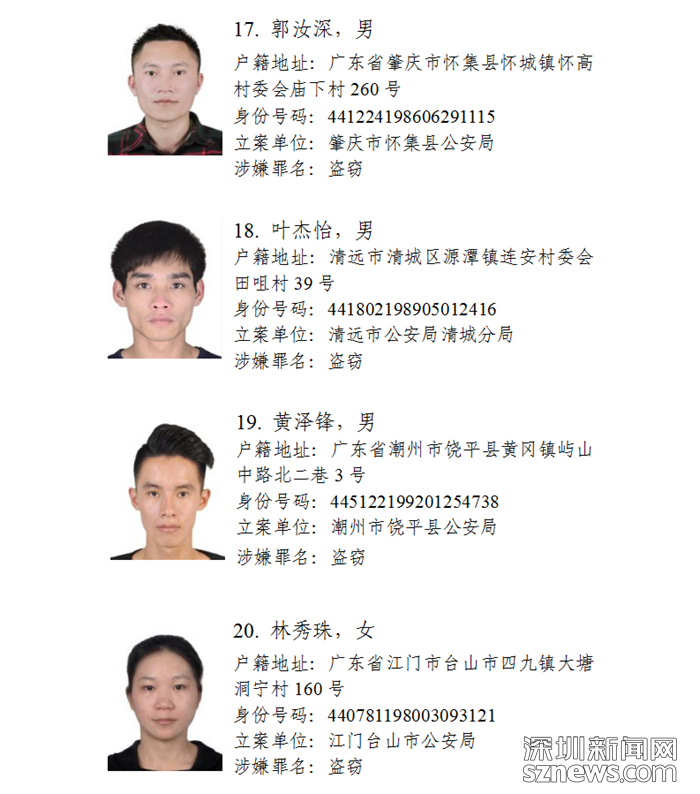 深圳新聞網(wǎng)11月5日訊(記者何暢)廣東省公安廳近日發(fā)布懸賞通告:廣東省公安廳決定從即日起公開懸賞通緝30名在逃涉盜搶騙犯罪嫌疑人,希望廣大人民群眾積極提供在逃犯罪嫌疑人線索。