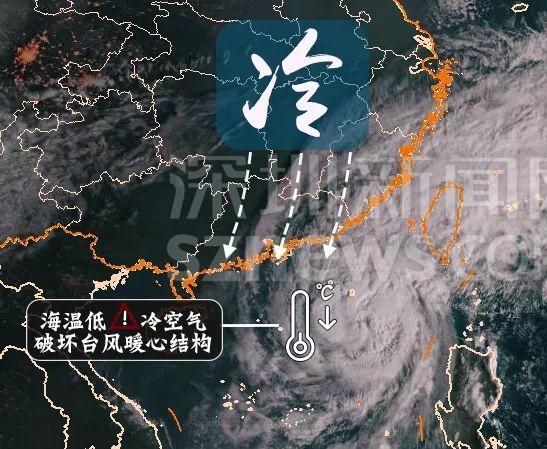 深圳市氣象局發(fā)布的冷空氣和海溫破壞臺風結構示意圖
