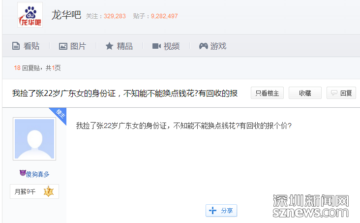 記者在網(wǎng)友的提示下,點(diǎn)擊進(jìn)入百度貼吧龍華吧(以下簡(jiǎn)稱龍華吧)。截至記者發(fā)稿時(shí),根據(jù)貼吧的公開信息顯示,該貼吧獲得329273名網(wǎng)友的關(guān)注,共發(fā)布過(guò)9282277篇帖文。記者通過(guò)首頁(yè)初步瀏覽發(fā)現(xiàn),龍華吧大部分帖文都涉及龍華、坂田片區(qū)網(wǎng)友的生活工作經(jīng)歷,并無(wú)違法違規(guī)的相關(guān)內(nèi)容。但是通過(guò)吧內(nèi)搜索“修車”“身份證”“微信”等關(guān)鍵詞時(shí),搜出的帖文信息卻令人瞠目結(jié)舌!