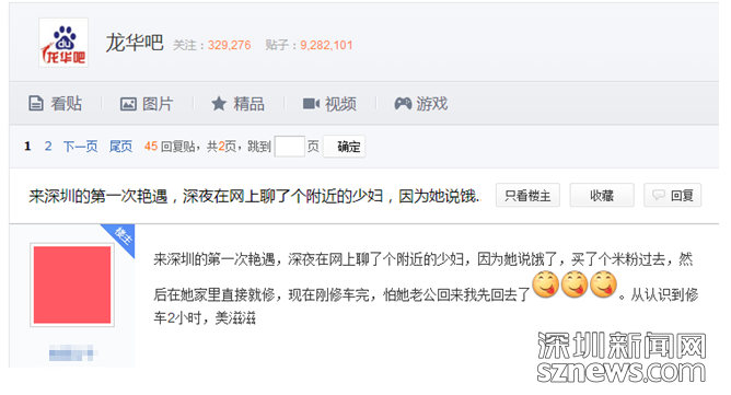深圳新聞網(wǎng)11月5日訊(記者 何暢)“百度貼吧龍華吧上面充滿色情、微信買賣,公然收身份證,小額貸等,沒(méi)人管?”,近日網(wǎng)友在深圳論壇上曝料百度貼吧“龍華吧”內(nèi)存在大量違法違規(guī)信息,引起網(wǎng)友廣泛關(guān)注。(網(wǎng)帖地址:https://szbbs.sznews.com/thread-3812582-1-1.html)