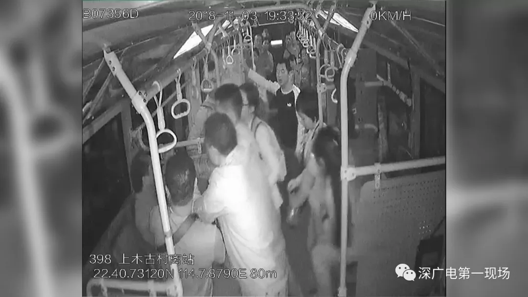 周圍的乘客看到這名男子動手打人后,一片嘩然,駕駛員立刻將車停在路邊并上前制止。