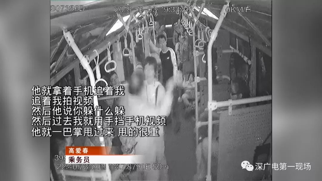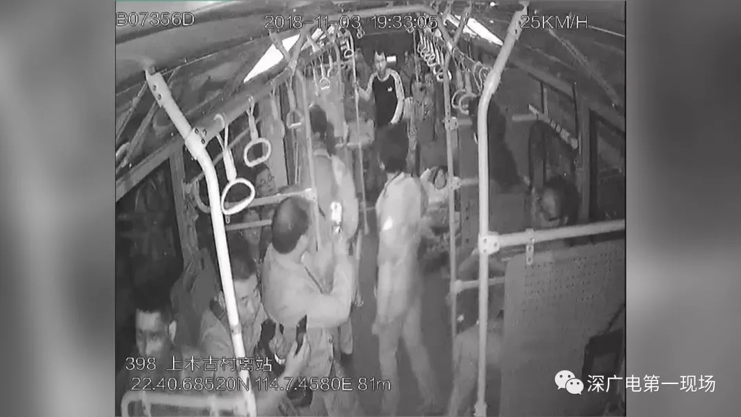 同時,周圍許多其它乘客也進行勸阻,但是就在一名女乘客試圖制止這名打人的男子時,這名男子竟然又提腳踢了這名女乘客的腹部。當(dāng)班駕駛員立即選擇報警,隨后華南城警務(wù)室民警將涉事男子帶走。
