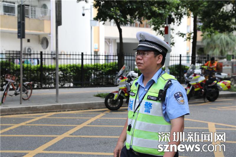 考點外,已有交通輔警幫忙指揮交通,方便考點周邊車輛通行