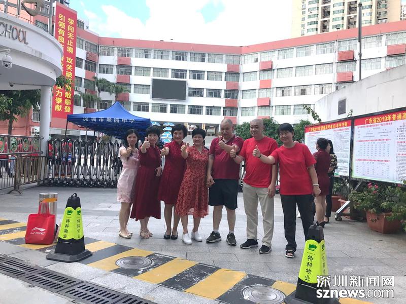 【翠園中學】門外的家長穿上紅衣為高考助力加油