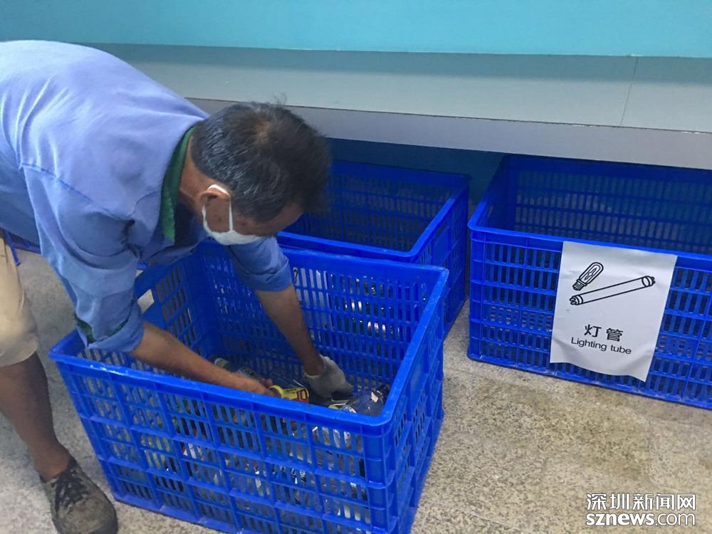 “有害垃圾包括電池、各種形狀的燈管及棄置藥品藥具等,需要專業(yè)人員來收?!鄙钲谑欣诸愂聞?wù)管理中心甘先生解釋了有害垃圾被鄧伯“落下”的原因。隨后,記者見到了危險的一面:當(dāng)天,在專業(yè)人員搬運(yùn)有害垃圾時,燈管突然破裂,碎了一地,散發(fā)出異常氣體,戴著特殊口罩及手套的他們?nèi)匀挥畜@無險地完成了運(yùn)送工作?!斑@確實很危險,但我們的工作人員都經(jīng)歷過嚴(yán)格的上崗培訓(xùn),也配置了齊全裝備,所以基本沒有發(fā)生過不可控的危險事件。”承運(yùn)有害垃圾的安信美實業(yè)有限公司黃金良介紹道。