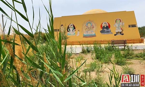 7月12日,新疆和田達瑪溝佛教遺址博物館外墻上臨摹的佛教壁畫。