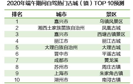 根據(jù)高德地圖交通大數(shù)據(jù)預(yù)測(cè),端午期間全國(guó)熱門(mén)自駕古城(鎮(zhèn))TOP10一半分布在長(zhǎng)三角區(qū)域,預(yù)計(jì)嘉興-烏鎮(zhèn)風(fēng)景名勝區(qū)自駕熱度最高,其次是湘西-鳳凰古城以及嘉興-西塘古鎮(zhèn)景區(qū)。