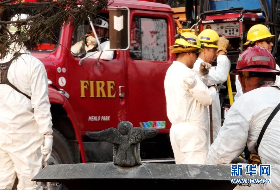 11月19日,在美國加利福尼亞州比尤特縣天堂鎮(zhèn),救援人員在山火廢墟中工作。新華社記者吳曉凌攝