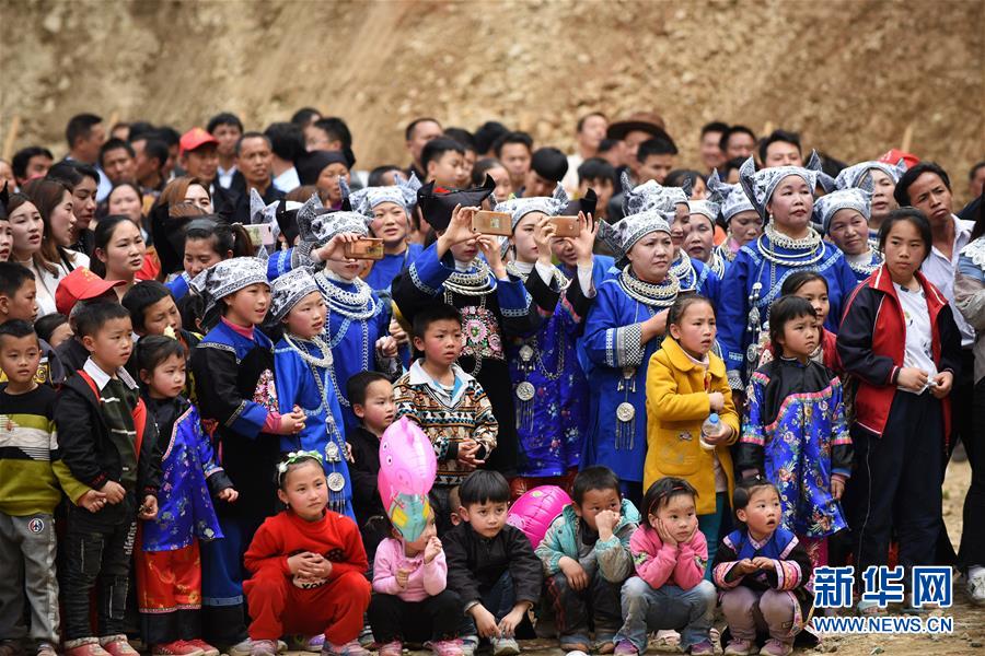 苗族群眾和來賓在觀看“三月三”民族歌舞表演(4月6日攝)。4月6日至7日,在貴州省黔東南苗族侗族自治州劍河縣觀么鎮(zhèn)新民村和新合村,來自劍河縣和三穗縣的苗族同胞歡聚一堂,通過民族歌舞展演、非遺手工藝展示、千戶祭“巫耶”、跳蘆笙舞等形式,與來賓一起歡慶2019年高雍苗族“三月三”民俗文化節(jié)。 新華社記者 楊文斌 攝