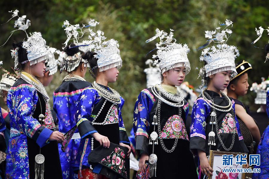 苗族女孩盛裝參加“三月三”非遺手工藝展演活動(4月6日攝)。4月6日至7日,在貴州省黔東南苗族侗族自治州劍河縣觀么鎮(zhèn)新民村和新合村,來自劍河縣和三穗縣的苗族同胞歡聚一堂,通過民族歌舞展演、非遺手工藝展示、千戶祭“巫耶”、跳蘆笙舞等形式,與來賓一起歡慶2019年高雍苗族“三月三”民俗文化節(jié)。 新華社記者 楊文斌 攝
