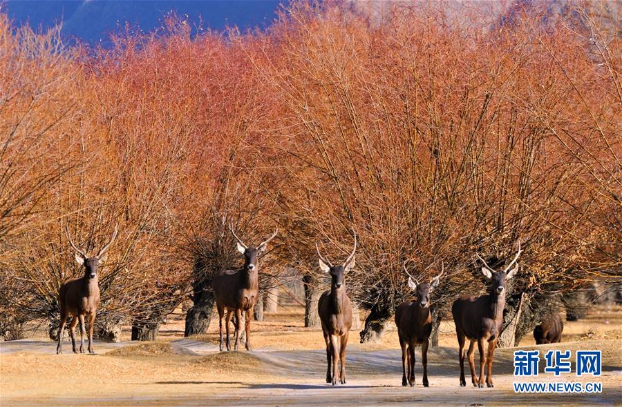 馬鹿棲息在位于雅魯藏布江岸邊的山南市乃東區(qū)澤當鎮(zhèn)的萬畝人工防護林里(2018年1月6日攝)。新華社記者 張汝鋒 攝