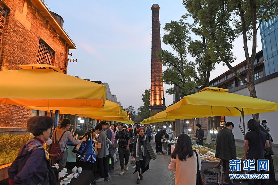 游客在江西景德鎮(zhèn)陶溪川文創(chuàng)街區(qū)內(nèi)游覽參觀(2016年10月20日攝)。新華社記者 萬象 攝