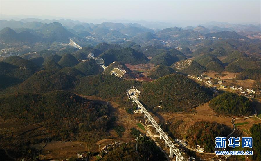 這是12月15日無人機拍攝的成貴高鐵貴州清鎮(zhèn)段。新華社記者楊文斌攝