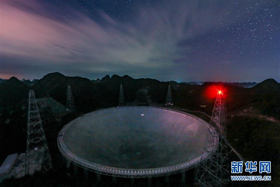 8月27日拍攝的星空下的“中國(guó)天眼”。新華社記者歐東衢攝