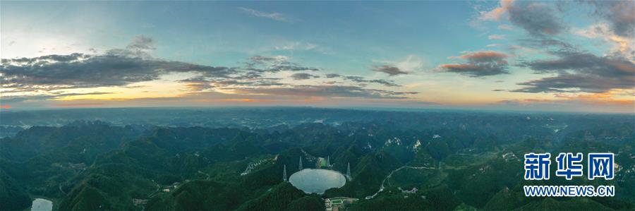 8月27日拍攝的落日余暉中的“中國(guó)天眼”。新華社記者歐東衢攝