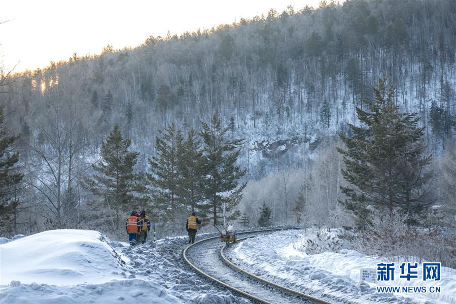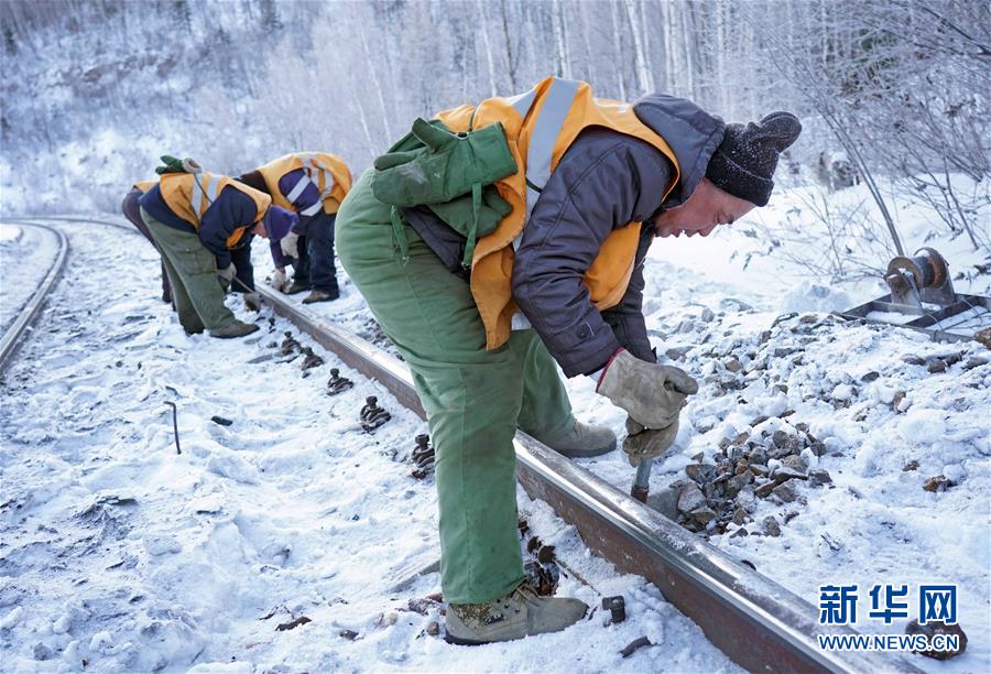 1月8日,西羅奇維修工隊工作人員在嫩林線497公里處進行維修作業(yè)。新華社記者王毓國攝