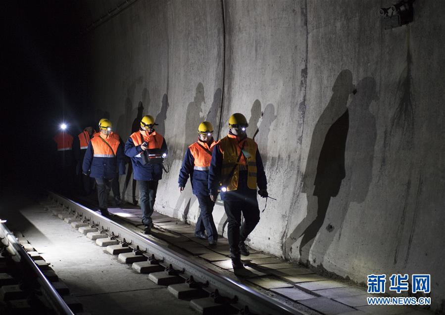 1月7日,在西羅奇嶺二號隧道附近,西羅奇維修工隊工作人員前往維修地點。新華社記者才揚攝