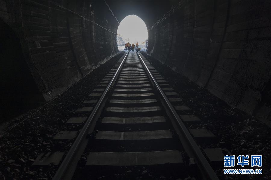 通化通信車間無線工區(qū)鐵路通信工人進入全長7088米的灣灣川隧道作業(yè)(1月10日攝)。2020年春運1月10日拉開帷幕。新華社記者許暢攝