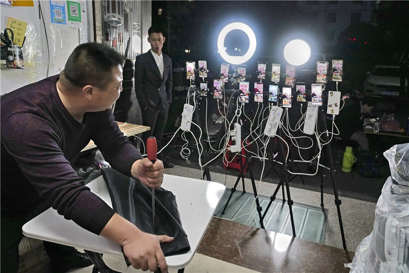 2019年11月9日,浙江金華,義烏北下朱村,一個(gè)昵稱叫“海寧大哥”的主播,正在他的小店直播銷售皮褲。4年來(lái),他的“老鐵”(粉絲)有十萬(wàn)多,還帶了好些直播弟子。