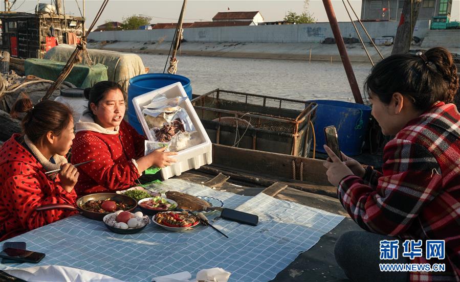 4月22日,馬花雨(中)在推薦海產(chǎn)品,她平時(shí)賣豬肉,兼職推銷海產(chǎn)品。新華社記者楊磊攝