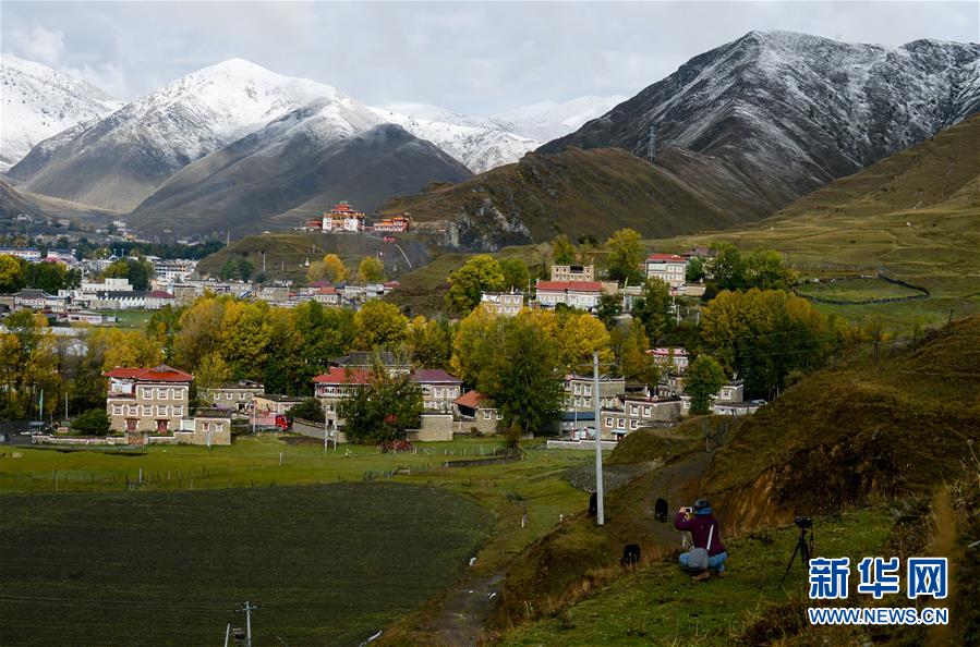 游客在拍攝新都橋景色(2019年10月17日攝)。新華社記者唐文豪攝
