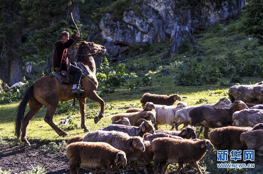 時值盛夏,新疆西天山水草豐美,夏牧場上牛羊成群。和煦的陽光普照草場,也照進牧民心中。