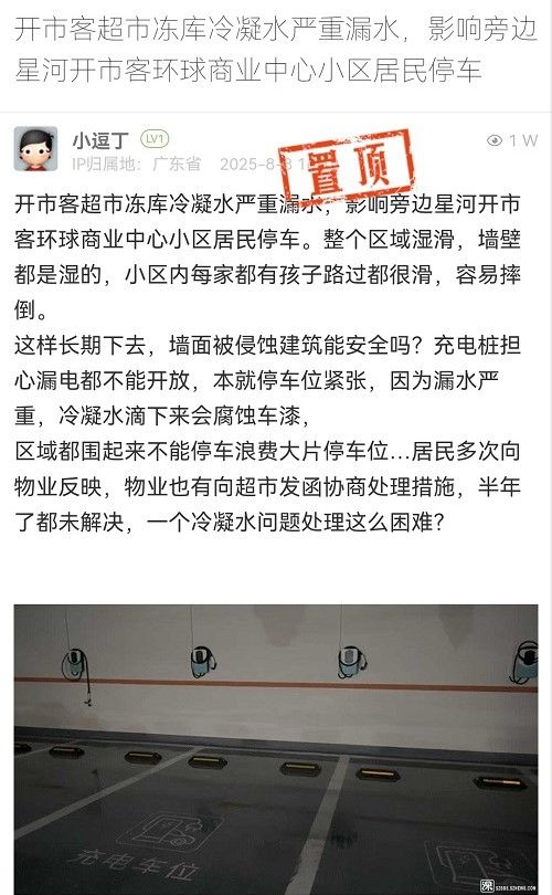 24. 帖文《開市客超市凍庫冷凝水嚴重漏水,影響旁邊星河開市客環(huán)球商業(yè)中心小區(qū)居民停車》
