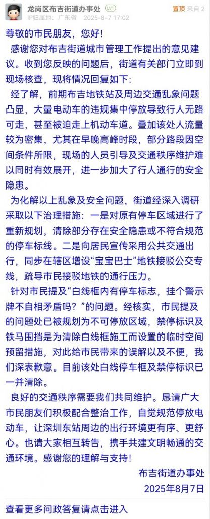良好的交通秩序需要我們共同維護。懇請廣大市民朋友們積極配合整治工作,自覺規(guī)范停放電動車,讓深圳東站周邊的出行環(huán)境更有序、更舒心。也請大家相互轉(zhuǎn)告,攜手共建文明暢通的交通環(huán)境。感謝您的理解與支持!