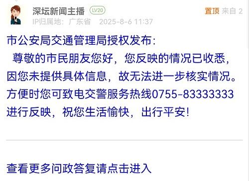 各職能單位如需對網(wǎng)友反映的問題進行回應(yīng),可在深圳論壇注冊官方賬號并通過認證,回帖進行回應(yīng)。