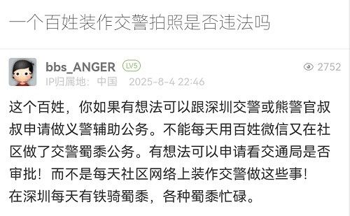 5. 帖文《一個百姓裝作交警拍照是否違法嗎》
