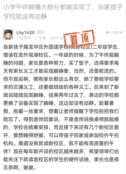 12. 帖文《小學(xué)午休躺睡大部分都能實現(xiàn)了,自家孩子學(xué)校就沒有動靜》