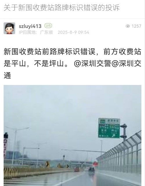 26. 帖文《關(guān)于新圍收費站路牌標識錯誤的投訴》