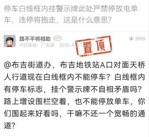 針對市民提及“白線框內(nèi)有停車標志,掛個警示牌不自相矛盾嗎?”的問題。經(jīng)核實,市民提及的問題處已被規(guī)劃為不可停放區(qū)域,禁停標識及鐵馬圍擋是為清除白線框施工而設(shè)置的臨時空間預(yù)留措施,對此給市民帶來的誤解以及不便,我們深表歉意。目前該處白線停車框及禁停標識已一并清除。