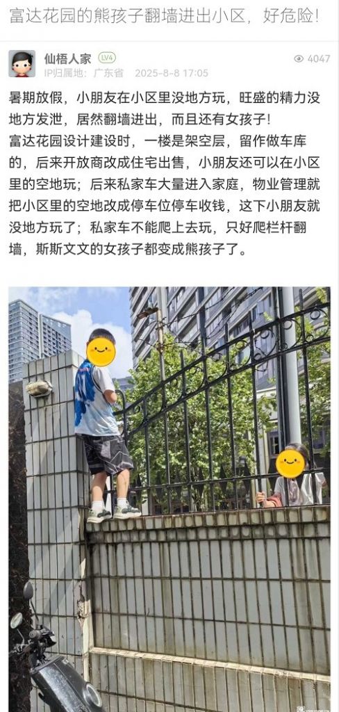25. 帖文《富達花園的熊孩子翻墻進出小區(qū),好危險!》