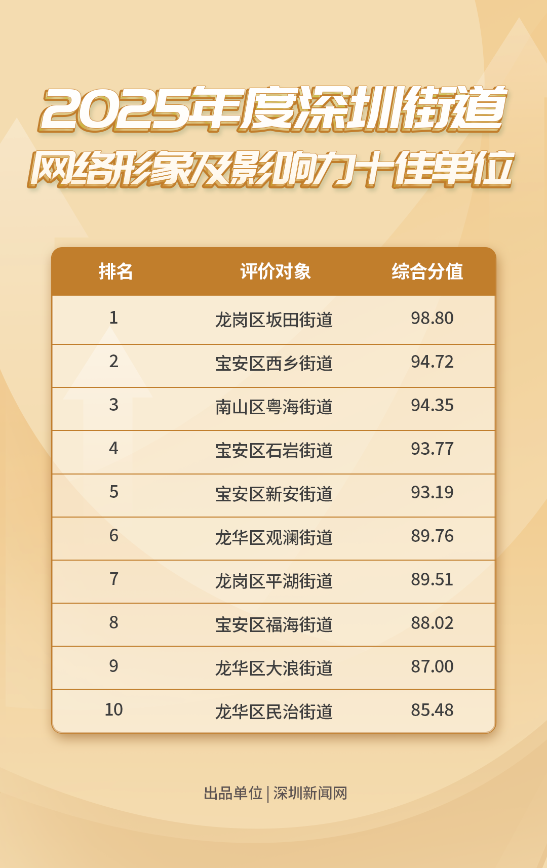 《深圳各街道網(wǎng)絡(luò)形象及影響力榜》