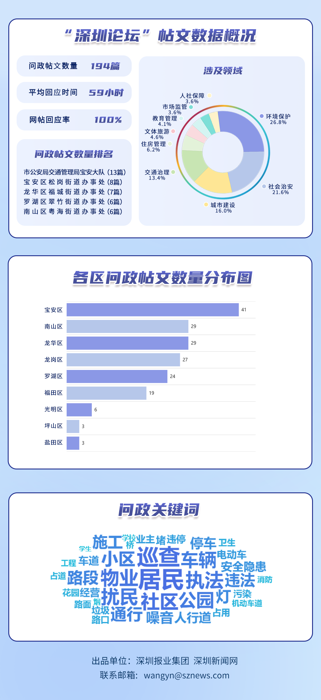 榜單帖文數(shù)據(jù)源自深圳論壇,均為網(wǎng)民點(diǎn)名希望涉事單位回應(yīng)的網(wǎng)帖,共涵蓋86個(gè)單位、194篇網(wǎng)帖。所采集帖文發(fā)布時(shí)間為2026年2月1日至2月28日,采集截止時(shí)間為2026年3月1日。
